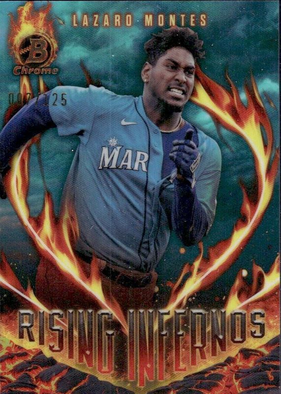 2024 Bowman Lazaro Montes Rising Infernos Aqua Refractor #107/125 Mariners