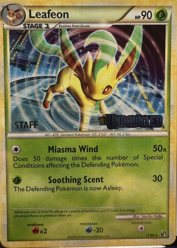 Leafeon 2010 HeartGold & SoulSilver: Undaunted #17/90 Promo (Prerelease - STAFF) RAW TCG (NEAR MINT) Price Guide