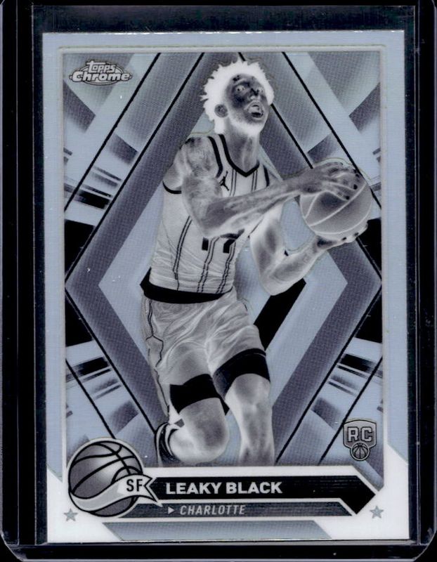 The Leaky Black 2023 Topps Chrome #51 Negative Refractor Rookie card is 1 of 32 Leaky Black's card variations in the 2023 Topps Chrome set being tracked by Sports Card Investor, including Base, Certified Autographs, Certified Autographs - Blue Basketball Refractor, Certified Autographs - Pink Basketball Refractor /55, and Certified Autographs - Orange Basketball Refractor /25.