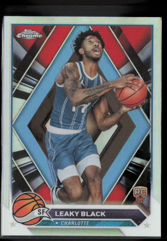 The Leaky Black 2023 Topps Chrome #51 Refractor Rookie card is 1 of 32 Leaky Black's card variations in the 2023 Topps Chrome set being tracked by Sports Card Investor, including Base, Certified Autographs, Certified Autographs - Blue Basketball Refractor, Certified Autographs - Pink Basketball Refractor /55, and Certified Autographs - Orange Basketball Refractor /25.