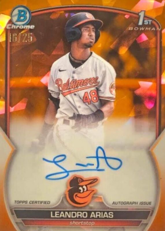 Auctions Ending Soon for Leandro Arias 2023 Bowman Sapphire Edition #BSPA-LA Chrome Prospect Auto - Orange /25 (1st) RAW