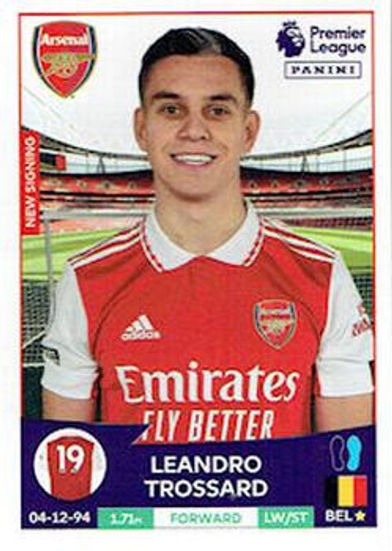 Leandro Trossard's Soccer cards are available in at least 56 sets. Leandro Trossard's biggest 7-day price movers are 2023 Panini Premier League Stickers #U7 Transfer Update, 2023 Panini Premier League Stickers #157 Base, and 2023 Panini Premier League Stickers #166 Base.