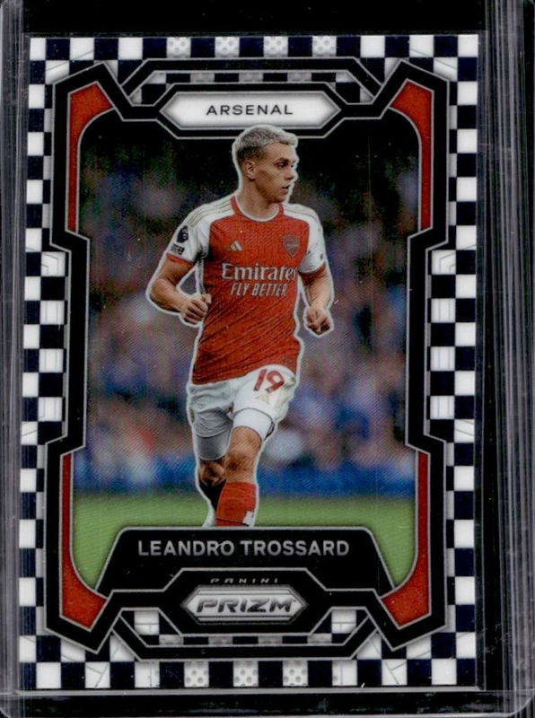 The Leandro Trossard 2023 Prizm Premier League #26 Black & White Checker /(SSP) card is 1 of 62 Leandro Trossard's card variations in the 2023 Prizm Premier League set being tracked by Sports Card Investor, including Base, Blue Mosaic, Breakaway, Breakaway Orange, and Choice.