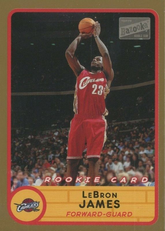 2003 Topps Bazooka LeBron James RC #223 GOLD Road Red Jersey Rookie Card.