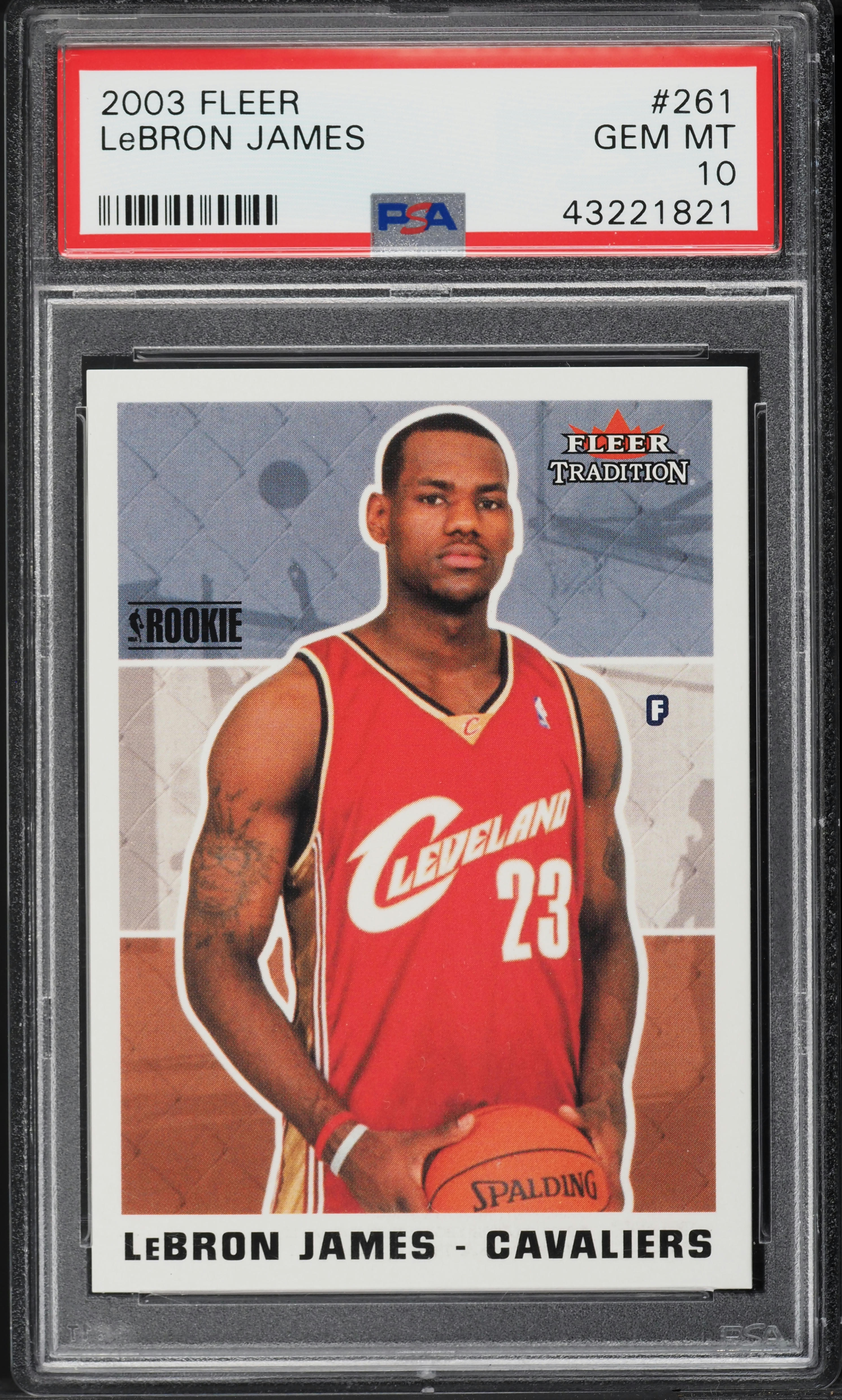 The LeBron James 2003 Fleer Tradition #261 Base Rookie card in Raw condition has moved down -$26.92 (-29.0%) in the last 30 days and was last sold for $65.76 .
