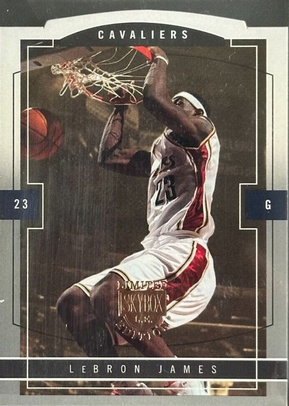 This card is 1 of 7 LeBron James' card variations in the 2003 Skybox LE set being tracked by Sports Card Investor, including Gold Proofs /150, Artist Proofs /50, Photographer Proofs /25, Executive Proofs /1, and Sky's the Limit.