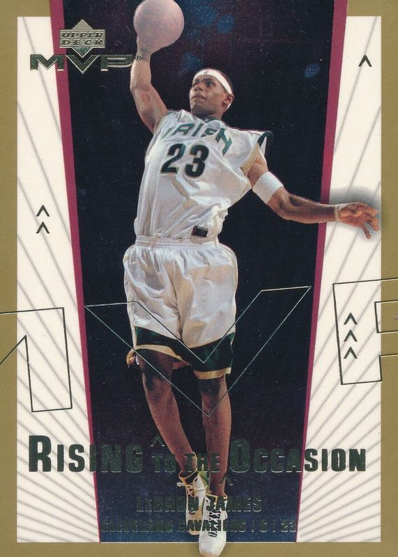 The LeBron James 2003 Upper Deck MVP #RO2 Rising to the Occasion Rookie card in Raw condition has moved up $1.05 (+5.0%) in the last 30 days and was last sold for $22.05 .