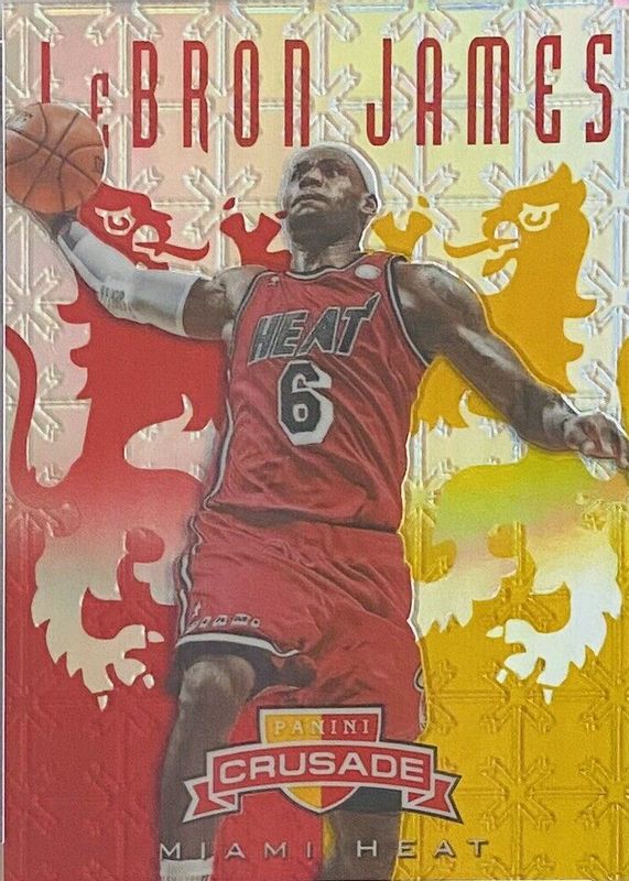 This card is 1 of 6 LeBron James' card variations in the 2012 Crusade set being tracked by Sports Card Investor, including Prizm Blue & Gold, Prizm Purple & Gold /49, Prizm Green & Gold /25, Prizm Gold /10, and Prizm Black /1.