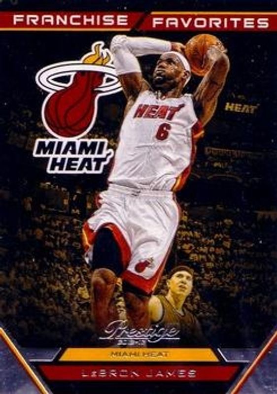 The LeBron James 2012 Prestige #6 Franchise Favorites card is 1 of 17 LeBron James' card variations in the 2012 Prestige set being tracked by Sports Card Investor, including Base, Bonus Shots Gold /249, Bonus Shots Black /10, All Stars East, and Connections.