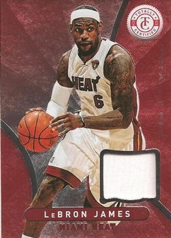 The LeBron James 2012 Totally Certified #36 Totally Red Memorabilia card is 1 of 17 LeBron James' card variations in the 2012 Totally Certified set being tracked by Sports Card Investor, including Base, Totally Red /499, Totally Blue /299, Totally Gold /25, and Totally Green /5.