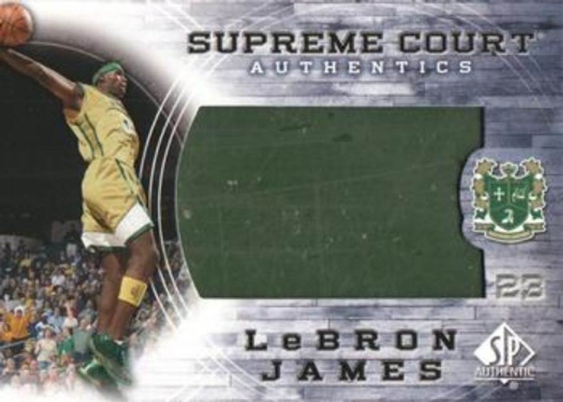 The LeBron James 2013 SP Authentic #SC-12 LeBron James Supreme Court /10 card is 1 of 48 LeBron James' card variations in the 2013 SP Authentic set being tracked by Sports Card Investor, including #14 Base, #71 Base, #71 2001-02 SP Rookie FX Autographs, #71 2001-02 SP Rookie FX Autographs - Film, and #71 2001-02 SP Rookie FX - Film.