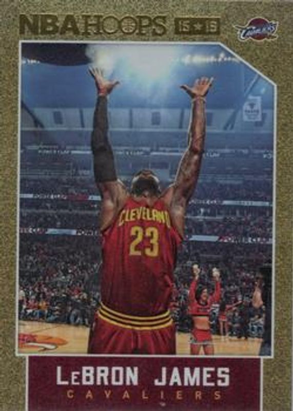 The LeBron James 2015 Hoops #14 Gold card is 1 of 38 LeBron James' card variations in the 2015 Hoops set being tracked by Sports Card Investor, including Base, Green, Red Back, Blue /399, and Red /299.
