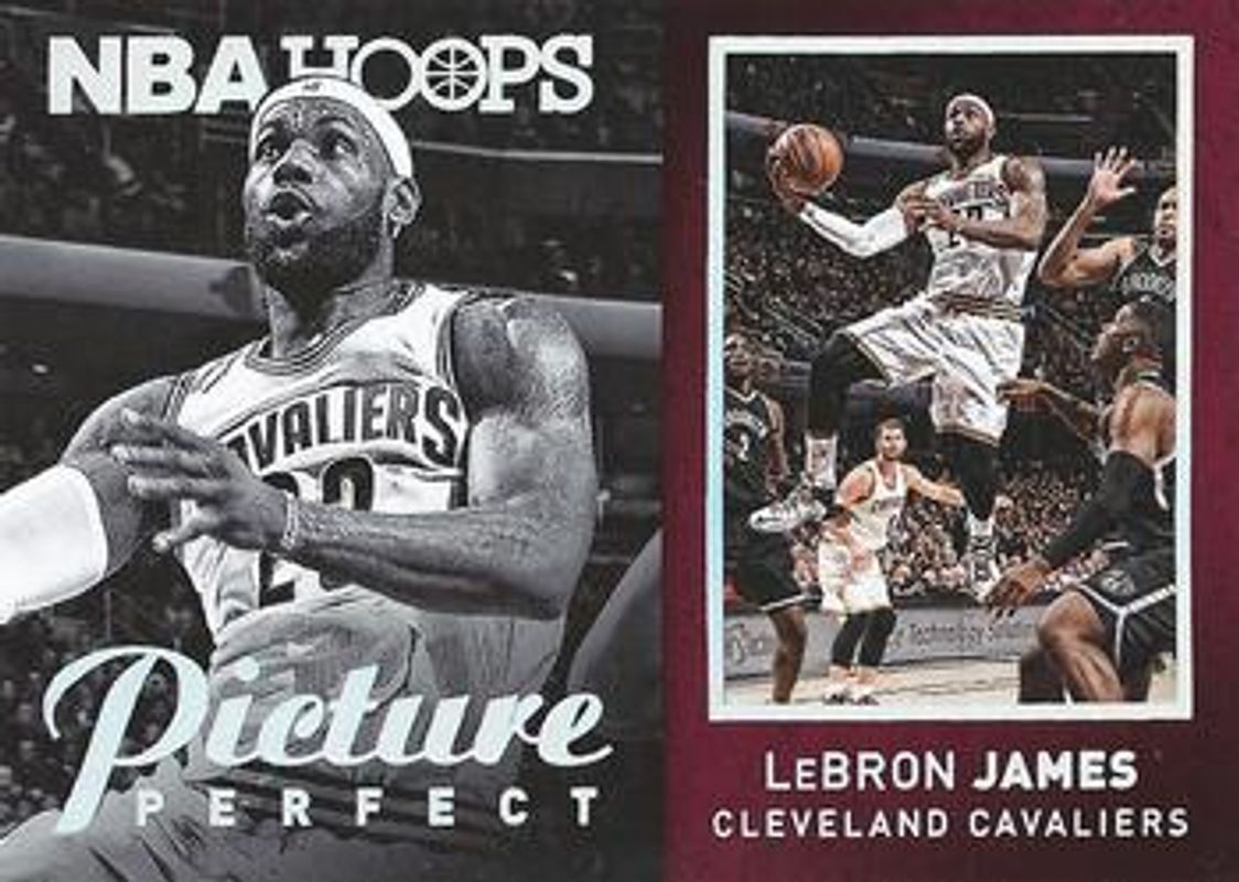 The LeBron James 2015 Hoops #18 Picture Perfect card is 1 of 38 LeBron James' card variations in the 2015 Hoops set being tracked by Sports Card Investor, including Base, Gold, Green, Red Back, and Blue /399.