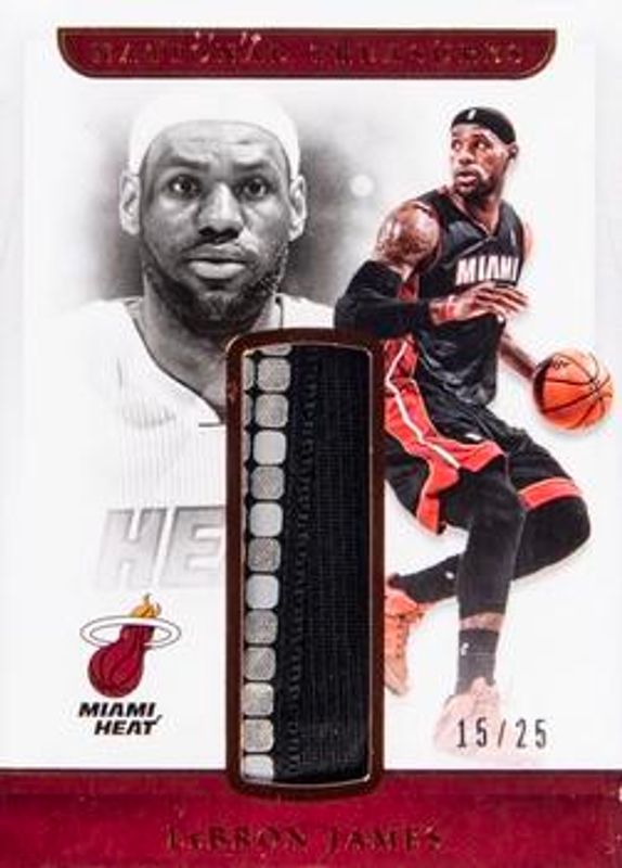 The LeBron James 2016 National Treasures #RM-LJ Retro Materials - Bronze /25 card is 1 of 48 LeBron James' card variations in the 2016 National Treasures set being tracked by Sports Card Investor, including Base /99, Bronze /25, Gold /10, Emerald /5, and Platinum /1.