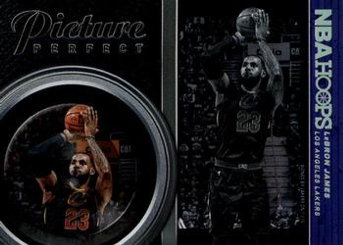 The LeBron James 2018 Hoops #PP-15 Picture Perfect card is 1 of 38 LeBron James' card variations in the 2018 Hoops set being tracked by Sports Card Investor, including Base, #82 Base, #82 Red Backs, #82 Premium Boxed Set /199, and #AS-16 Action Shots.