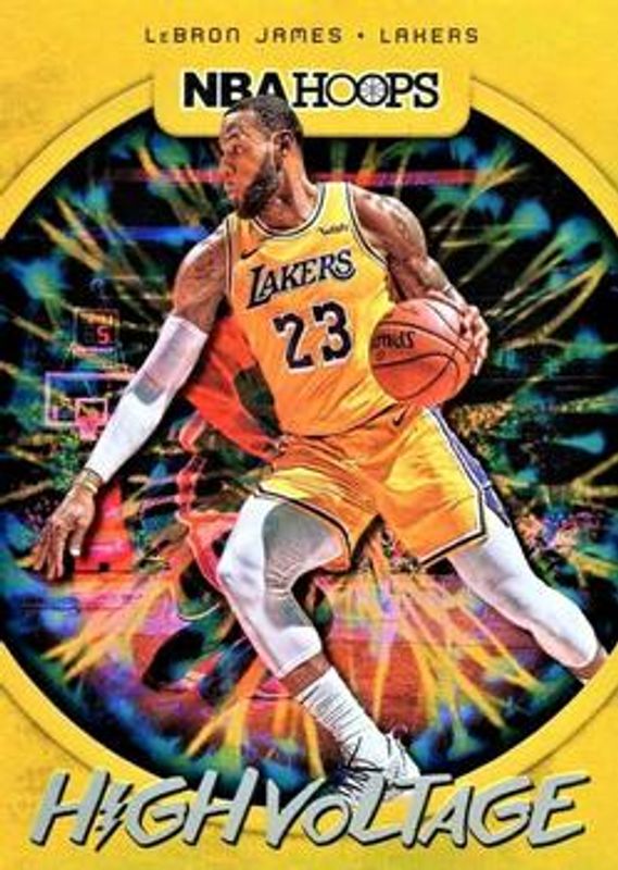 The LeBron James 2019 Hoops #2 High Voltage card is 1 of 44 LeBron James' card variations in the 2019 Hoops set being tracked by Sports Card Investor, including Base, Premium Box Set /199, Black Artist's Proof /1, Action Shots, and Back Stage Pass.