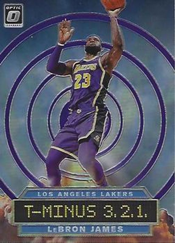 The LeBron James 2019 Optic #9 T-Minus 3...2...1... - Purple card is 1 of 126 LeBron James' card variations in the 2019 Optic set being tracked by Sports Card Investor, including Base, Blue Velocity, Checkerboard, Choice, and Choice Red & Green.