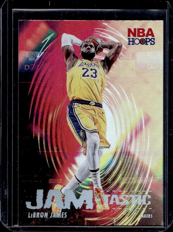 The LeBron James 2021 Hoops #14 JAM-tastic card is 1 of 83 LeBron James' card variations in the 2021 Hoops set being tracked by Sports Card Investor, including Base, Anniversary Edition, Blue, Green Ice, and Hyper Blue.