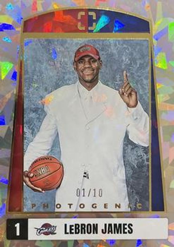 The LeBron James 2021 Photogenic #11 First Night - Gold /10 card is 1 of 27 LeBron James' card variations in the 2021 Photogenic set being tracked by Sports Card Investor, including Base, Silver, Diamond Anniversary /75, Gold /10, and Platinum /1.
