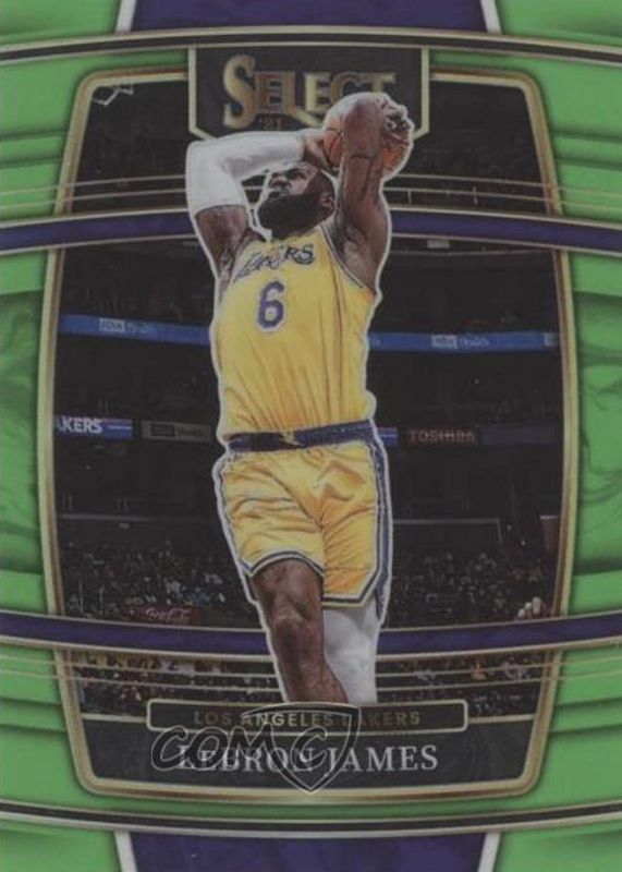 2021-22 Select LeBron James Neon Green Prizms Concourse #15/75 Lakers