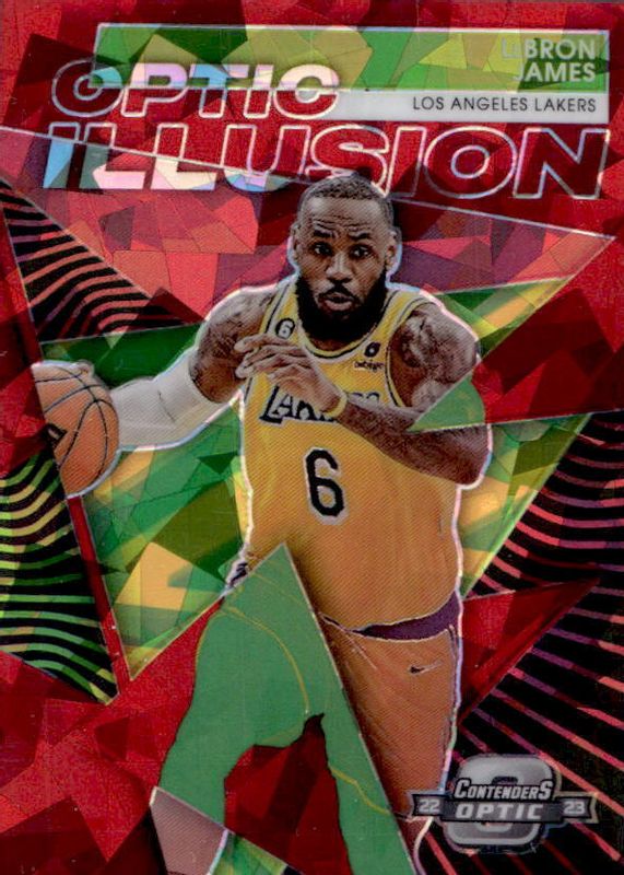 Lebron James 2022-23 Contenders Optic Illusion Red Ice prizm Lakers