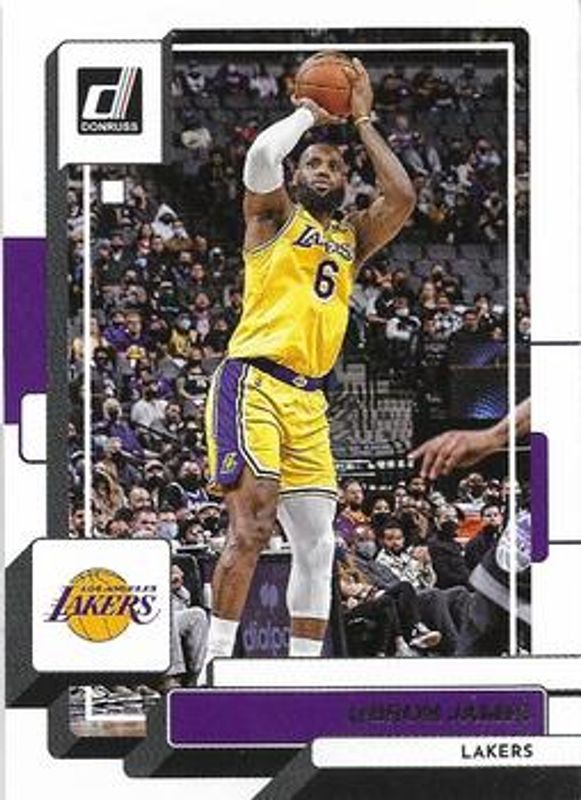 The LeBron James 2022 Donruss #128 Base card is 1 of 75 LeBron James' card variations in the 2022 Donruss set being tracked by Sports Card Investor, including Holo Green Laser, Holo Red & Gold Laser, Press Proof Silver, Yellow Flood, and Press Proof Purple /199.