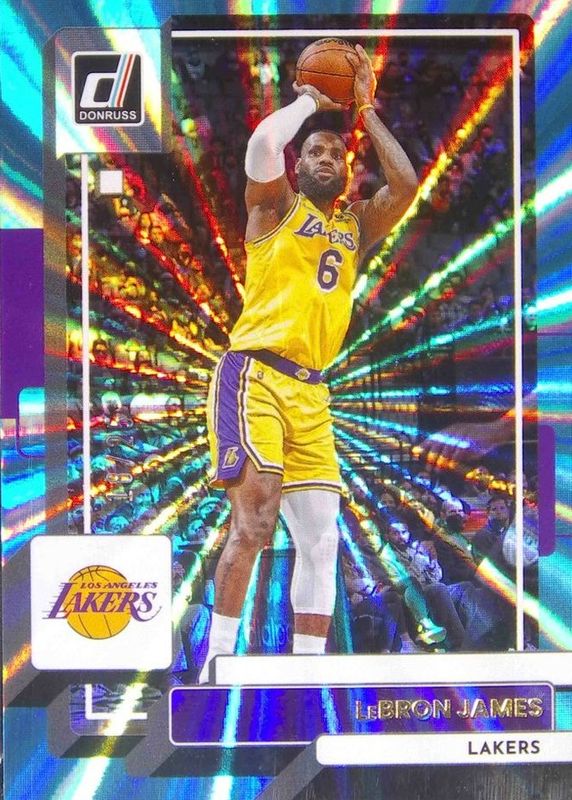 This card is 1 of 24 LeBron James' card variations in the 2022 Donruss set being tracked by Sports Card Investor, including Holo Green Laser, Holo Red & Gold Laser, Press Proof Silver, Yellow Flood, and Press Proof Purple /199.