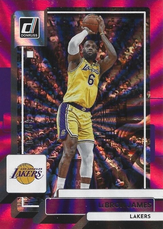 This card is 1 of 24 LeBron James' card variations in the 2022 Donruss set being tracked by Sports Card Investor, including Holo Green Laser, Holo Red & Gold Laser, Press Proof Silver, Yellow Flood, and Press Proof Purple /199.