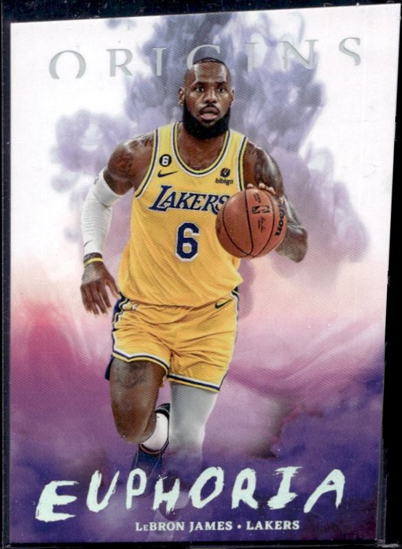 The LeBron James 2022 Origins #10 Euphoria card is 1 of 36 LeBron James' card variations in the 2022 Origins set being tracked by Sports Card Investor, including #52b Base, #52 Base, #52 Basketball, #52 Knight, and #52 Red.