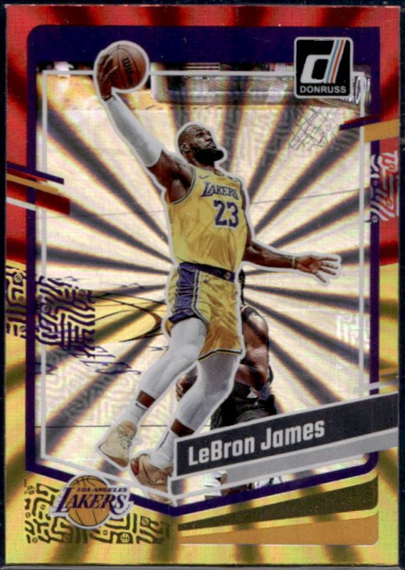 The LeBron James 2023 Donruss #2 Holo Red & Gold Laser card is 1 of 117 LeBron James' card variations in the 2023 Donruss set being tracked by Sports Card Investor, including Base, Choice, Holo Green Laser, Press Proof Silver, and Red.