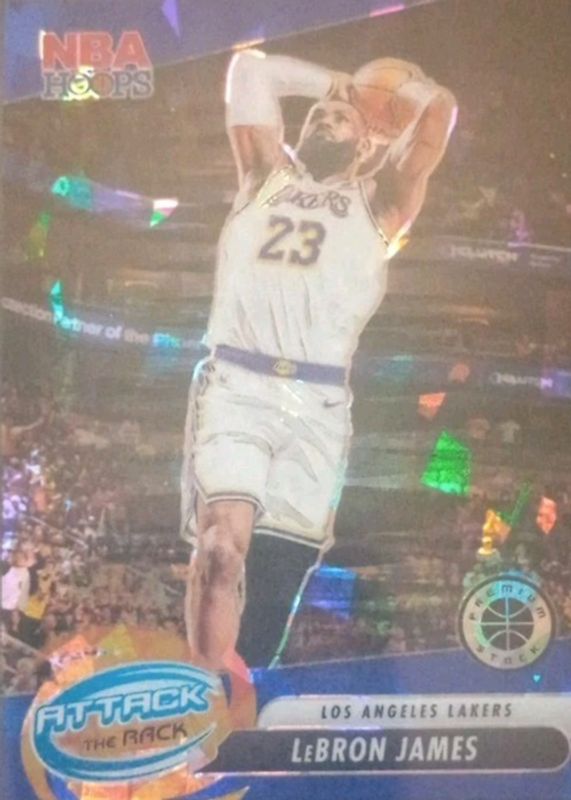 The LeBron James 2023 Hoops Premium Stock #4 Attack the Rack - Blue Ice /99 card in Raw condition has not changed in price in the last 30 days and was last sold for $17.00 .