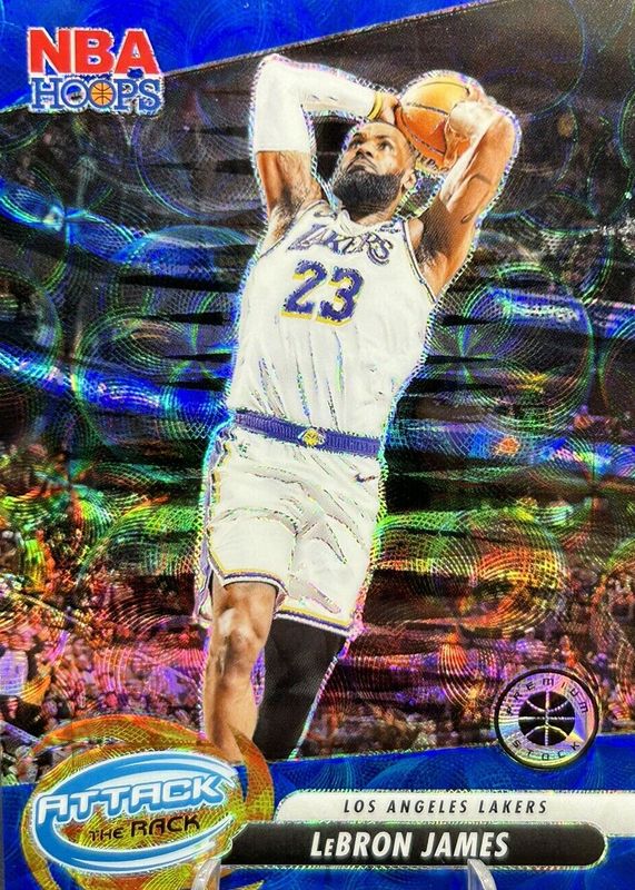 LeBron James 2023 Hoops Premium Stock #4 Attack the Rack - Premium Blue /25 RAW Price Guide