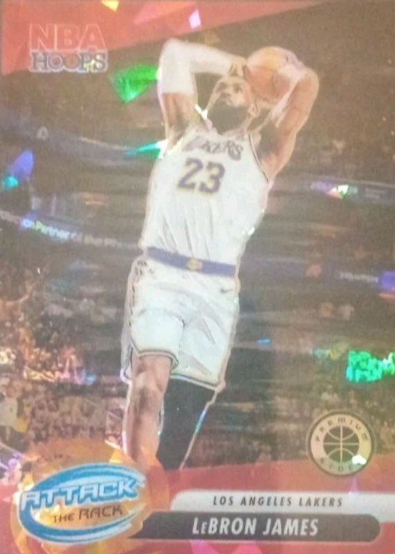 LeBron James 2023 Hoops Premium Stock #4 Attack the Rack - Red Ice /99 RAW Price Guide