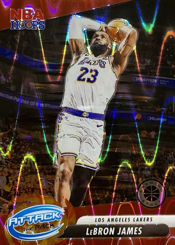 The LeBron James 2023 Hoops Premium Stock #4 Attack the Rack - Red Seismic /199 card in Raw condition has not changed in price in the last 30 days and was last sold for $15.00 .
