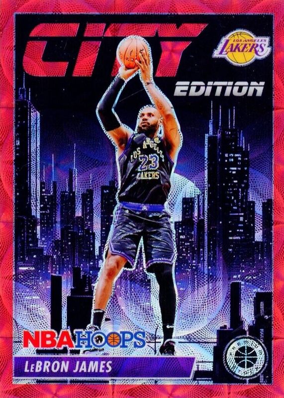 2023-2024 Hoops Premium Stock City Edition LeBron James Premium Red Prizm /88