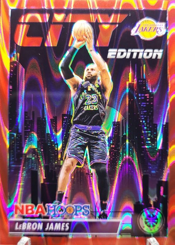 2023-24 LeBron James NBA Hoops Premium Stock City Edition Red Seismic Prizm /199