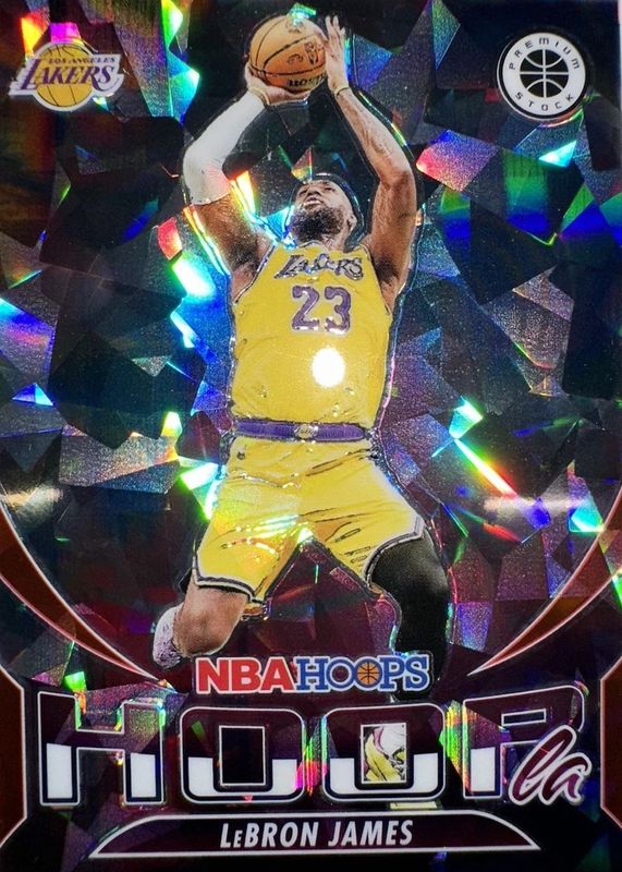 Auctions Ending Soon for LeBron James 2023 Hoops Premium Stock #10 Hoopla - Blue Ice /99 RAW