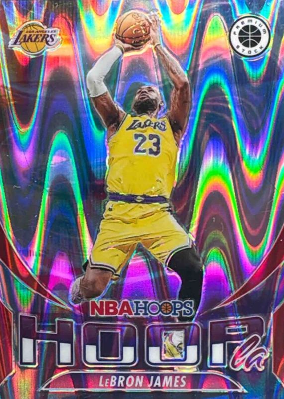 Best Prices Available For Sale of LeBron James 2023 Hoops Premium Stock #10 Hoopla - Red Seismic /199
