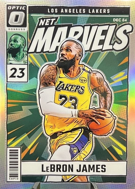 The LeBron James 2024 Optic #24 Net Marvels - Holo card in Raw condition has moved up $4.89 (+13.6%) in the last 30 days and was last sold for $40.89 .