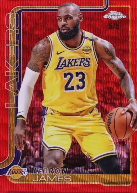 LeBron James 2025 Topps Chrome #127 Red Wave Refractor /5 RAW Price Guide