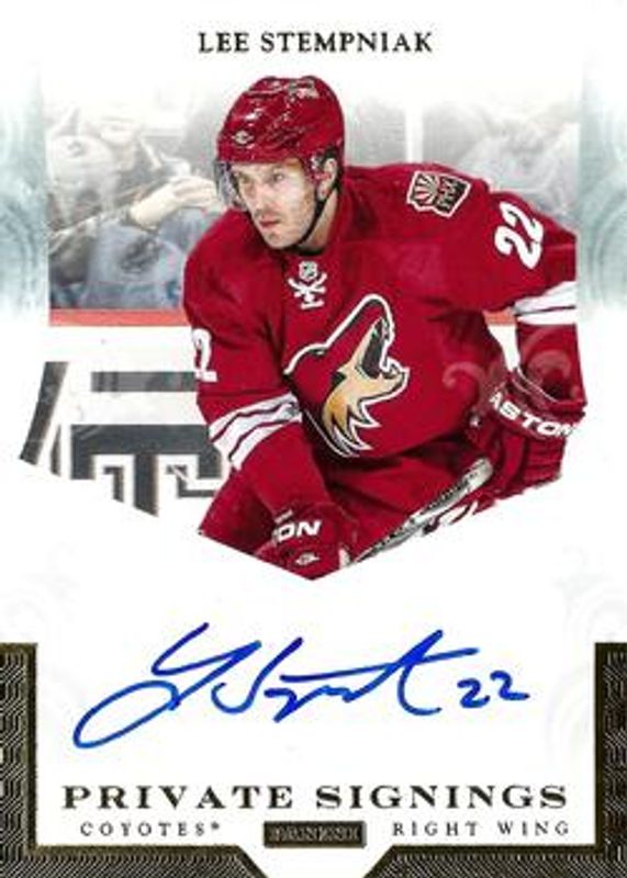 The Lee Stempniak 2010 Panini Luxury Suite #LS Private Signings card is 1 of 2 Lee Stempniak's card variations in the 2010 Panini Luxury Suite set being tracked by Sports Card Investor, including Private Signings Platinum /1.