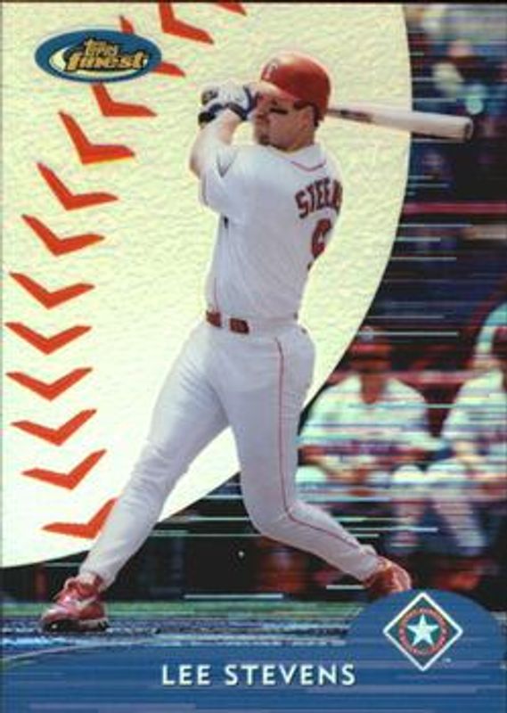 The Lee Stevens 2000 Topps Finest #31 Refractor /1000 card is 1 of 3 Lee Stevens' card variations in the 2000 Topps Finest set being tracked by Sports Card Investor, including Base, and Gold Refractor /100.