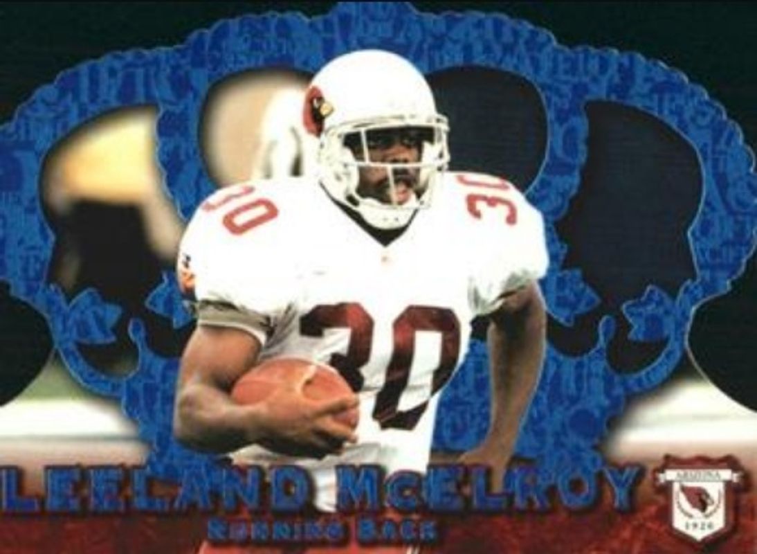 The Leeland McElroy 1996 Pacific Crown Royale #CR-107 Blue Rookie card is 1 of 3 Leeland McElroy's card variations in the 1996 Pacific Crown Royale set being tracked by Sports Card Investor, including Base, and Silver.