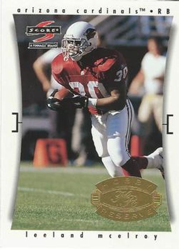 The Leeland McElroy 1997 Score Hobby Reserve #185 Base card is 1 of 2 Leeland McElroy's card variations in the 1997 Score Hobby Reserve set being tracked by Sports Card Investor, including Reserve Collection.