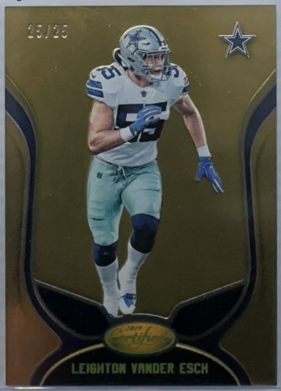 The Leighton Vander Esch 2019 Certified #53 Mirror Gold /25 card is 1 of 16 Leighton Vander Esch's card variations in the 2019 Certified set being tracked by Sports Card Investor, including Base, Mirror Orange /199, Mirror Teal /35, Mirror Gold Etch FOTL /25, and Mirror Black /1.