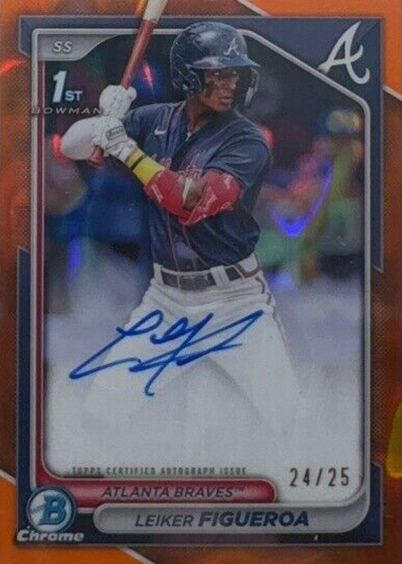 2024 Bowman Chrome Leiker Figueroa 1st Orange Lava Refractor Auto /25 Braves SP