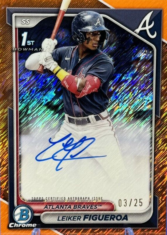 2024 Bowman Chrome Leiker Figueroa 1st Orange Shimmer Refractor Auto /25 Braves