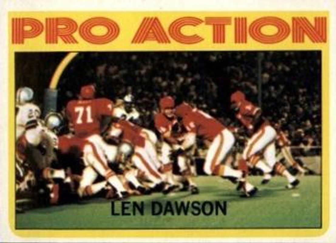 The Len Dawson 1972 Topps #340 Base card is 1 of 3 Len Dawson's card variations in the 1972 Topps set being tracked by Sports Card Investor, including Base, and In Action.