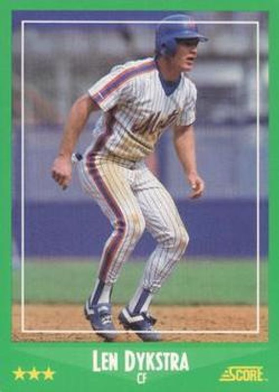 The Lenny Dykstra 1988 Score #370 Glossy card is 1 of 2 Lenny Dykstra's card variations in the 1988 Score set being tracked by Sports Card Investor, including Base.
