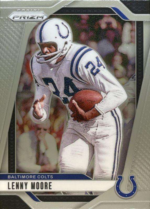 The Lenny Moore 2024 Prizm #296 Base card is 1 of 84 Lenny Moore's card variations in the 2024 Prizm set being tracked by Sports Card Investor, including Choice Blue Yellow Green, Choice Silver, Disco, Green, and Green Ice.